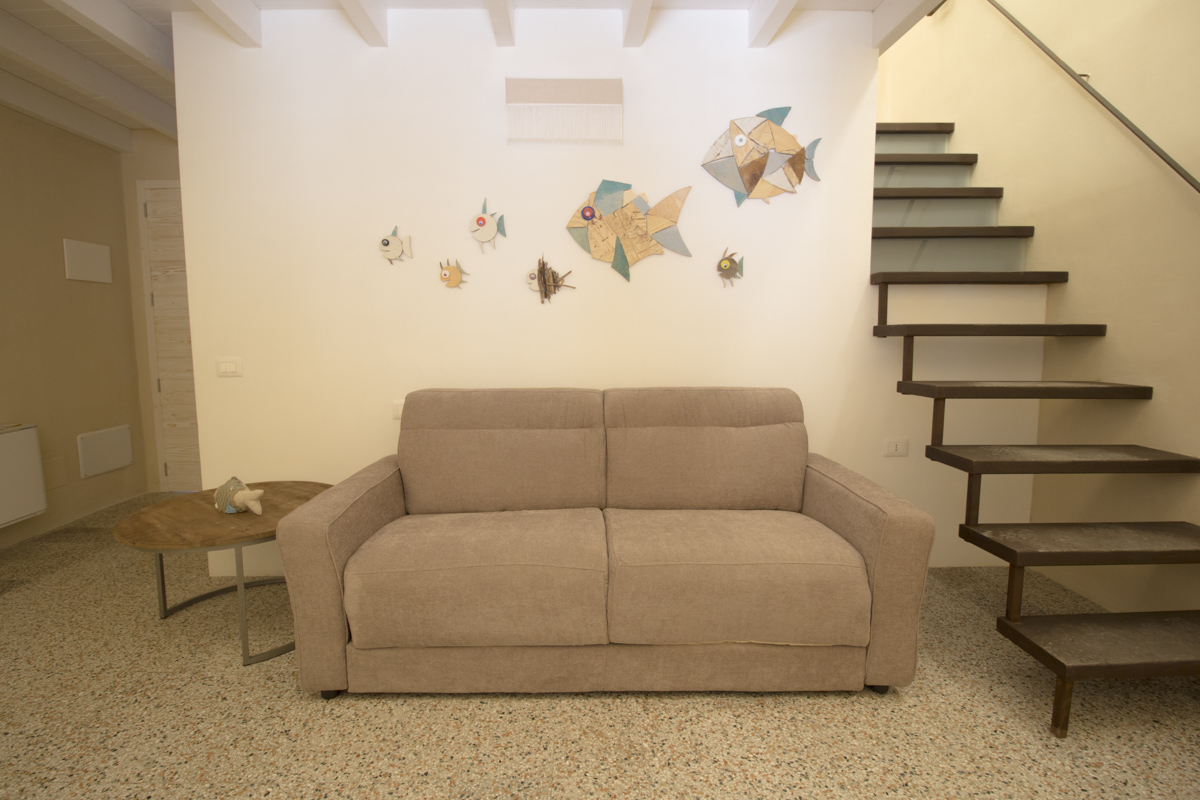 Al piano terra si aggiungono due ampie camere con giardino di pertinenza esclusiva riportato alla luce dopo il risanamento strutturale.